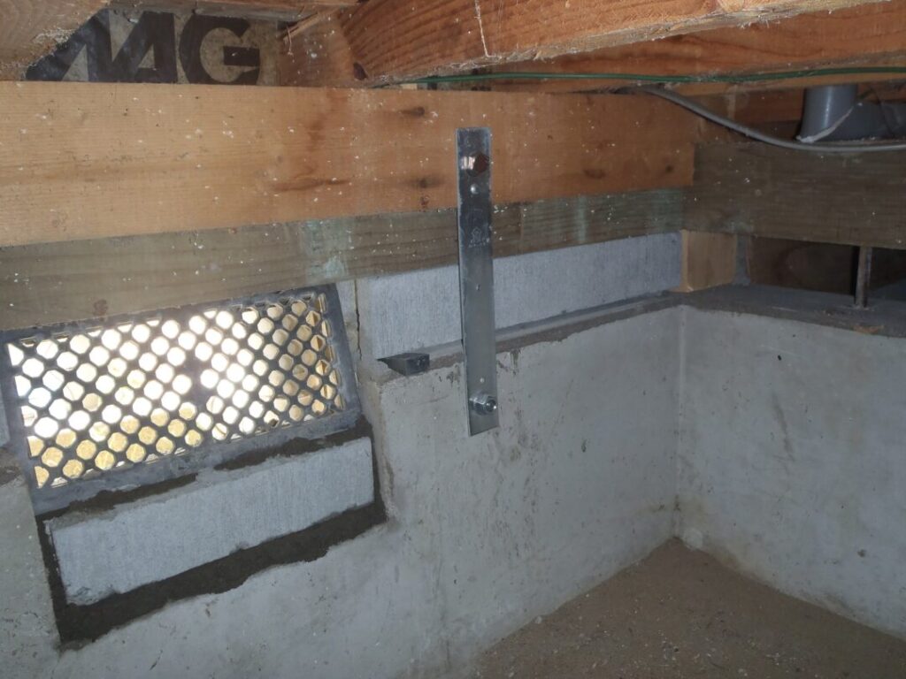 不動沈下による部分上げ工事 最大沈下 0~15cm ブロック充填・換気口嵩上げ・平金物取り付け